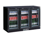 Gardez vos boissons fraîches et accessibles dans cet arrière-bar Polar. Extérieur en epoxy polyester noir, trois portes double vitrage verrouillables pivotantes.