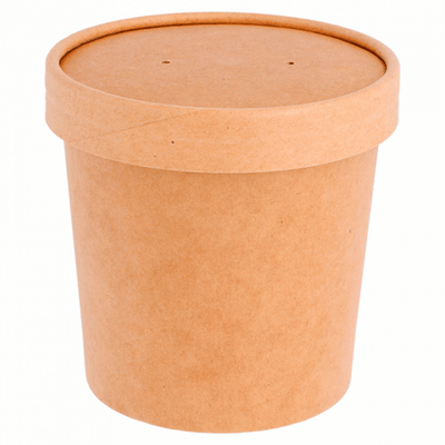 Récipient en carton double paroi avec couvercle en carton double paroi, idéal pour produits froids et chauds. Aptes pour le micro-ondes.